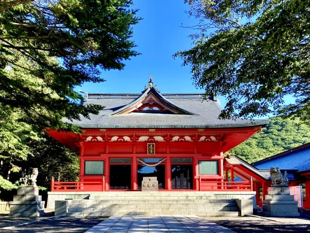 群馬県前橋市、赤城山の大沼湖畔に鎮座する 赤城神社(あかぎじんじゃ)。