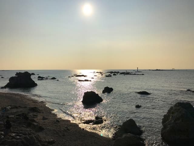 この神社は、海に近く、参道を抜けるとすぐに海風や潮の香りを感じられる、とっても開放的で自然豊かな場所で、海越しに海と空とを望む絶景スポット — “海の神社”として、地元の人も観光で訪れる人も大勢居て多くの人に愛されています。