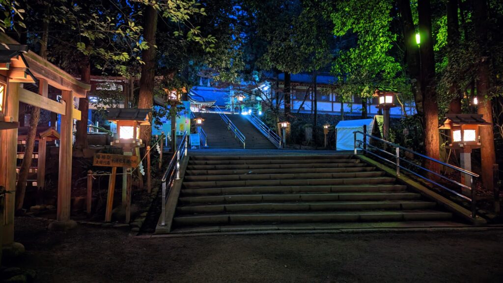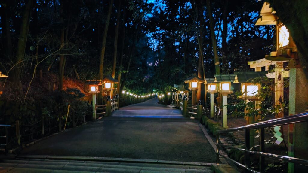 大神神社は日が沈むと灯篭に明かりが灯りまるで非日常の世界を体験させてくれます。