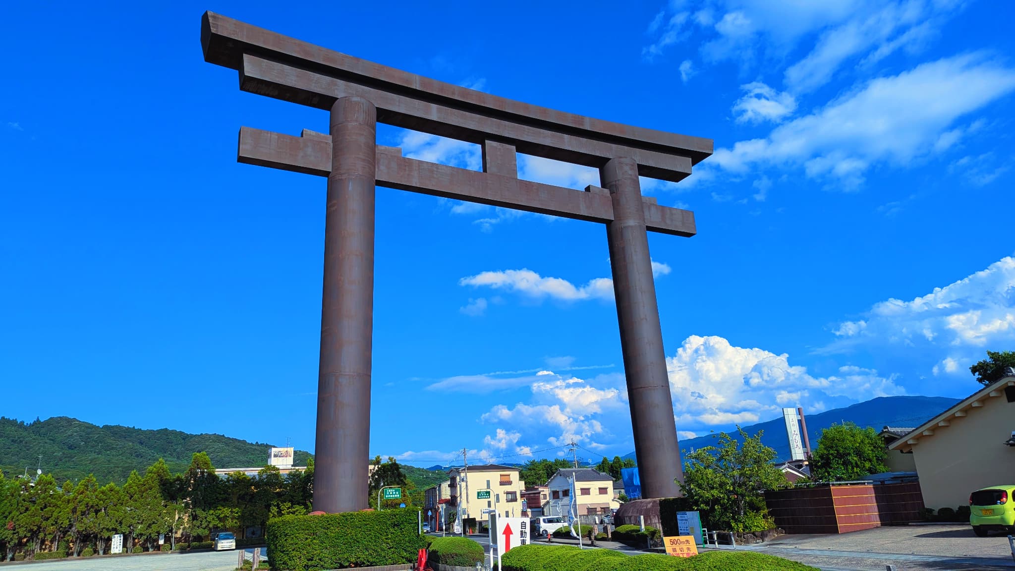 参道入り口に立つ 高さ32.2mの大鳥居 は大神神社のもうひとつのランドマーク。昭和に建立された大きな鳥居で、参拝の気持ちをぐっと高めてくれる存在です。迫力ある姿は写真スポットとしても人気。
